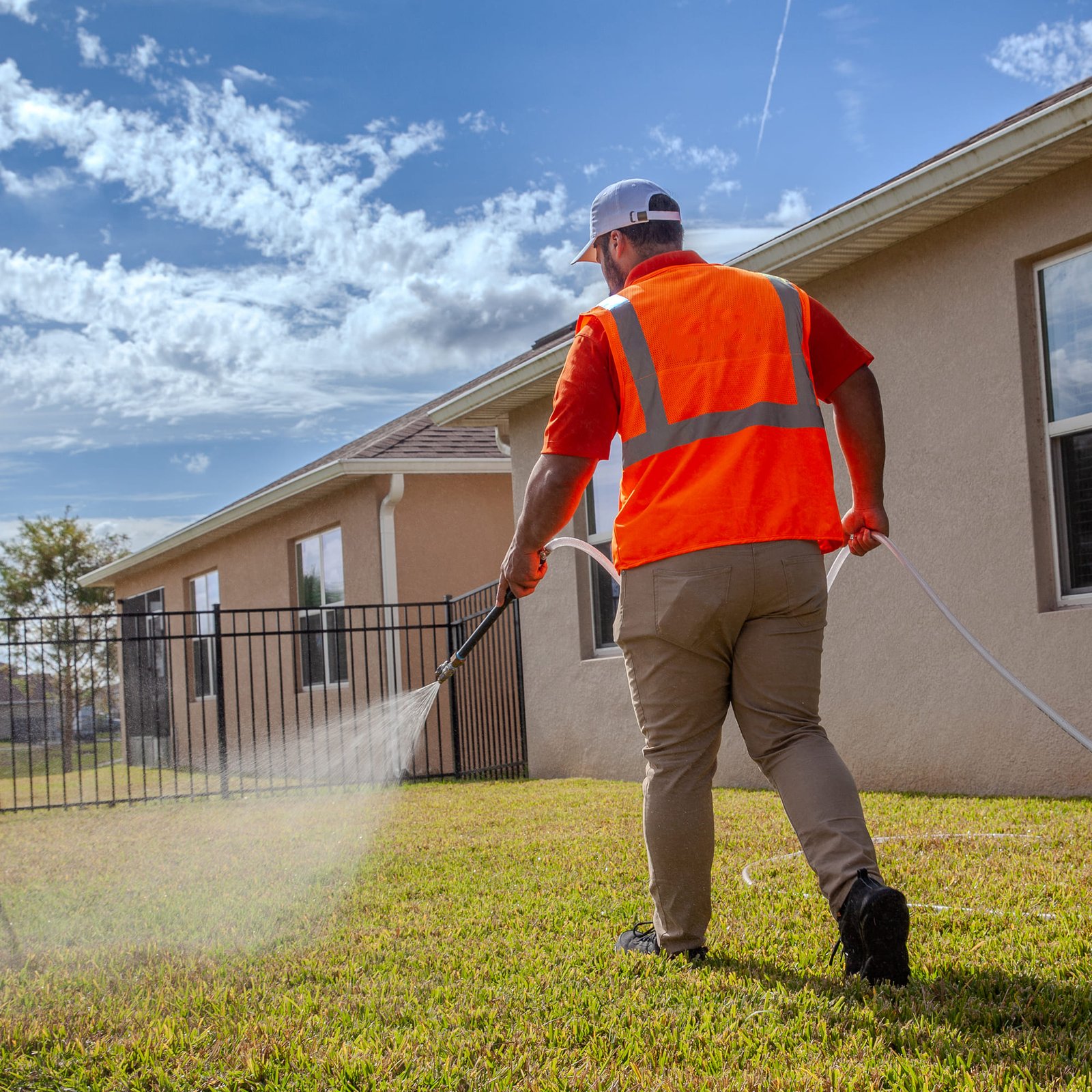 We use a water-based, eco-friendly solution made specifically for the pet industry. Safe for pets, families, and your lawn.